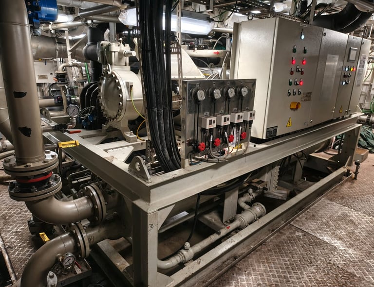 Delivered complete commissioning of a robust marine-grade mechanical and control system featuring precision instrumentation, automated control panels, and heavy-duty piping networks. The system is now fully operational and optimized for durability, efficiency, and long-term performance in challenging marine environments.